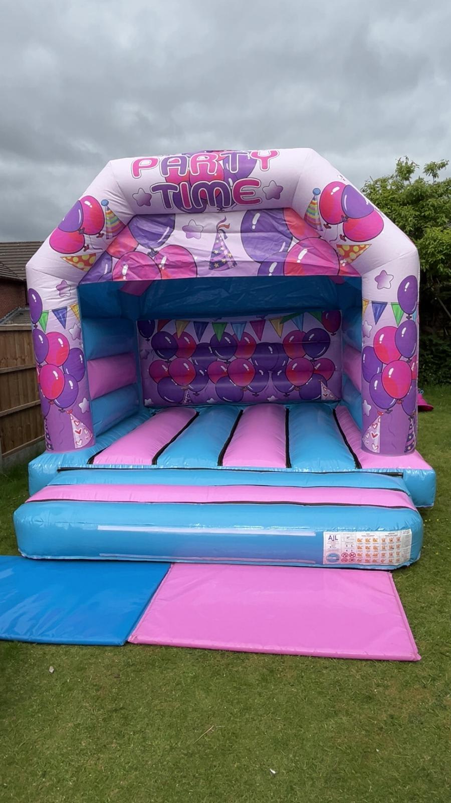 Let us turn your next event into a memorable occasion with our 12ft x 12ft Pink and Blue Party Time Castle. Contact us today to book your bouncy castle hire in Wigan, Warrington, St. Helens, Skelmersdale and Leigh, and let the fun begin! 🎊